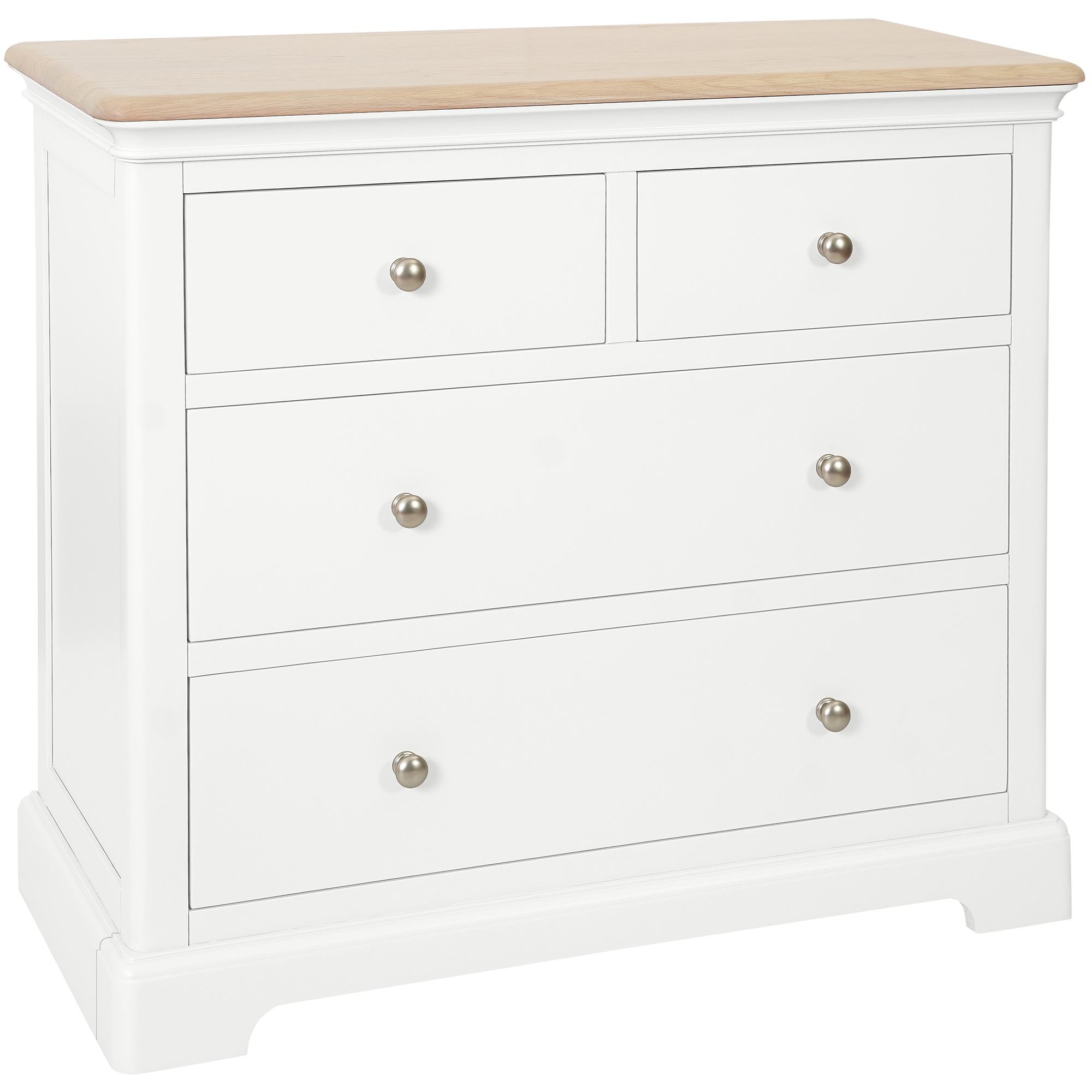This painted bedroom collection evokes traditional craftsmanship, quality and timeless design elements with a contemporary twist. Designed in the UK, the range features elgant, gently curved mouldings and a long-lasting paint finish. Complemented by solid oak lightly finished tops that feature softly rounded corners.