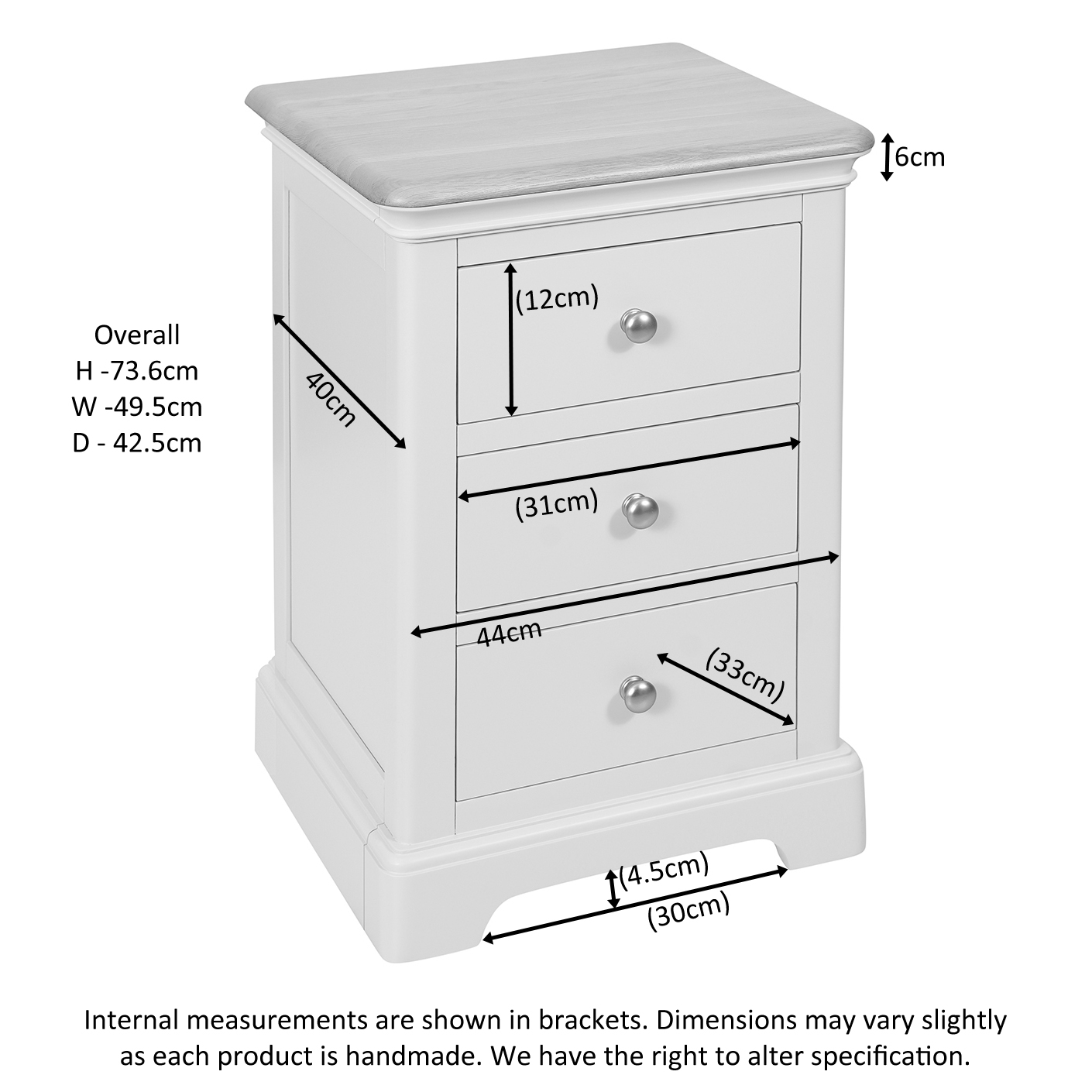 Lynmouth 3 DRAWER BEDSIDE Grey