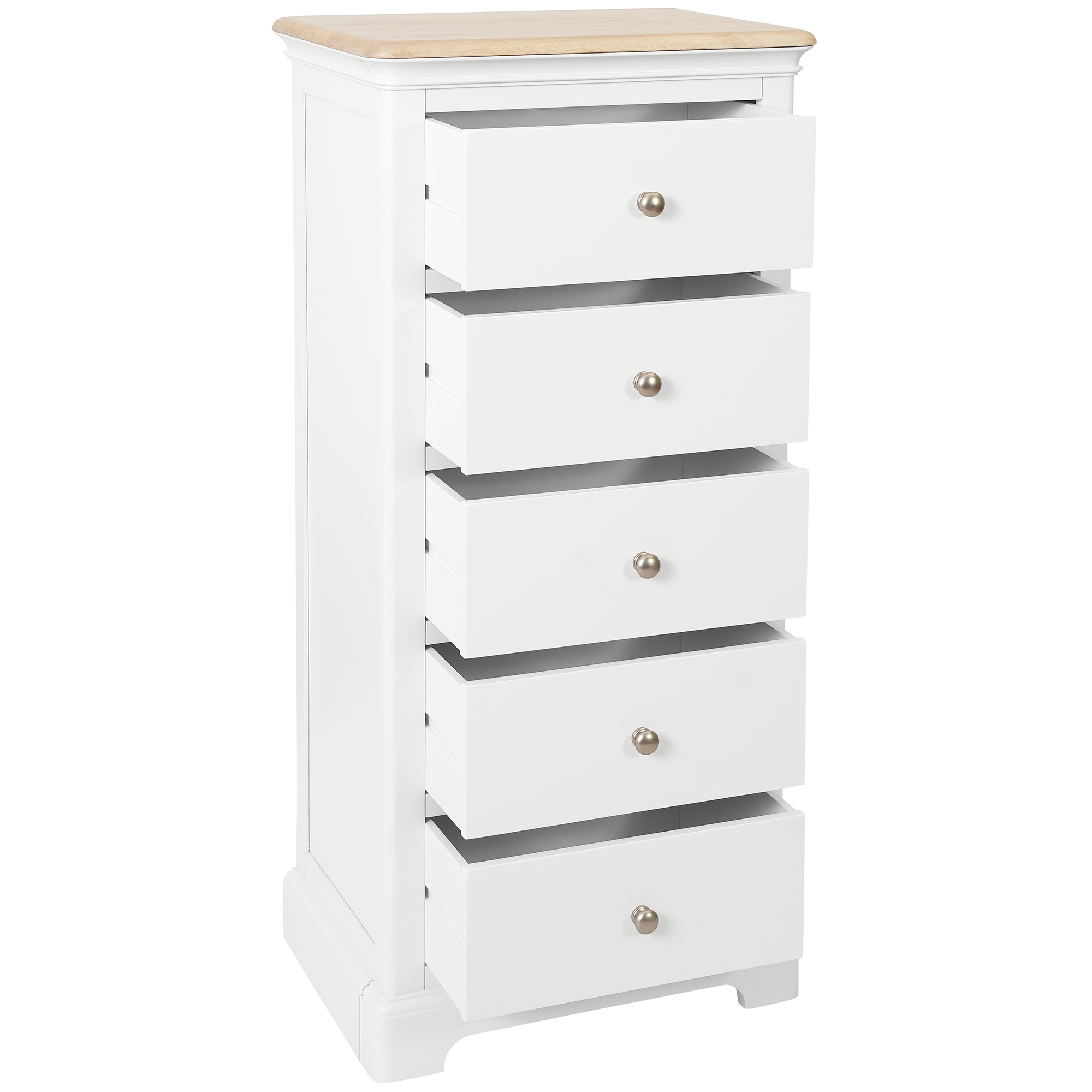 This painted bedroom collection evokes traditional craftsmanship, quality and timeless design elements with a contemporary twist. Designed in the UK, the range features elgant, gently curved mouldings and a long-lasting paint finish. Complemented by solid oak lightly finished tops that feature softly rounded corners.