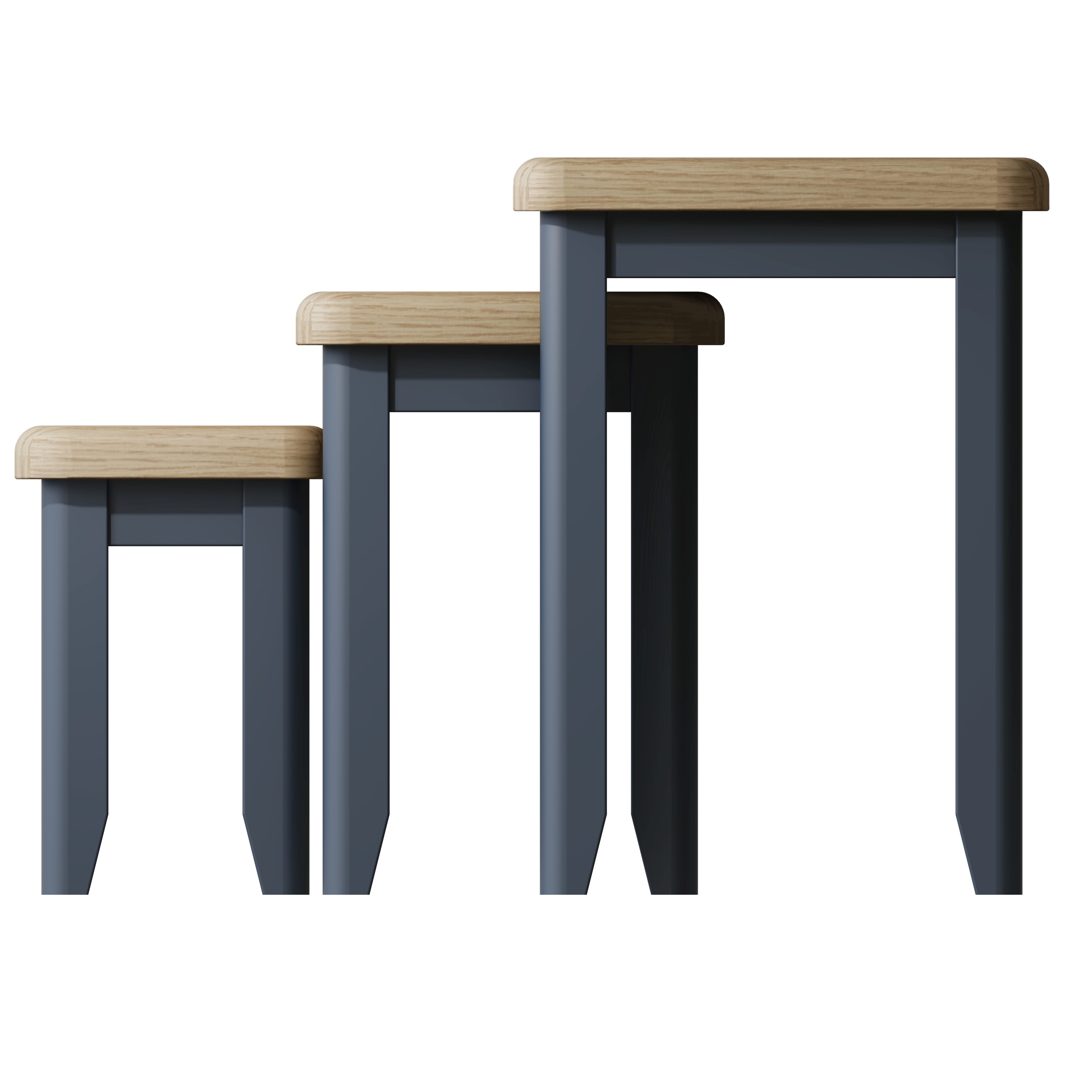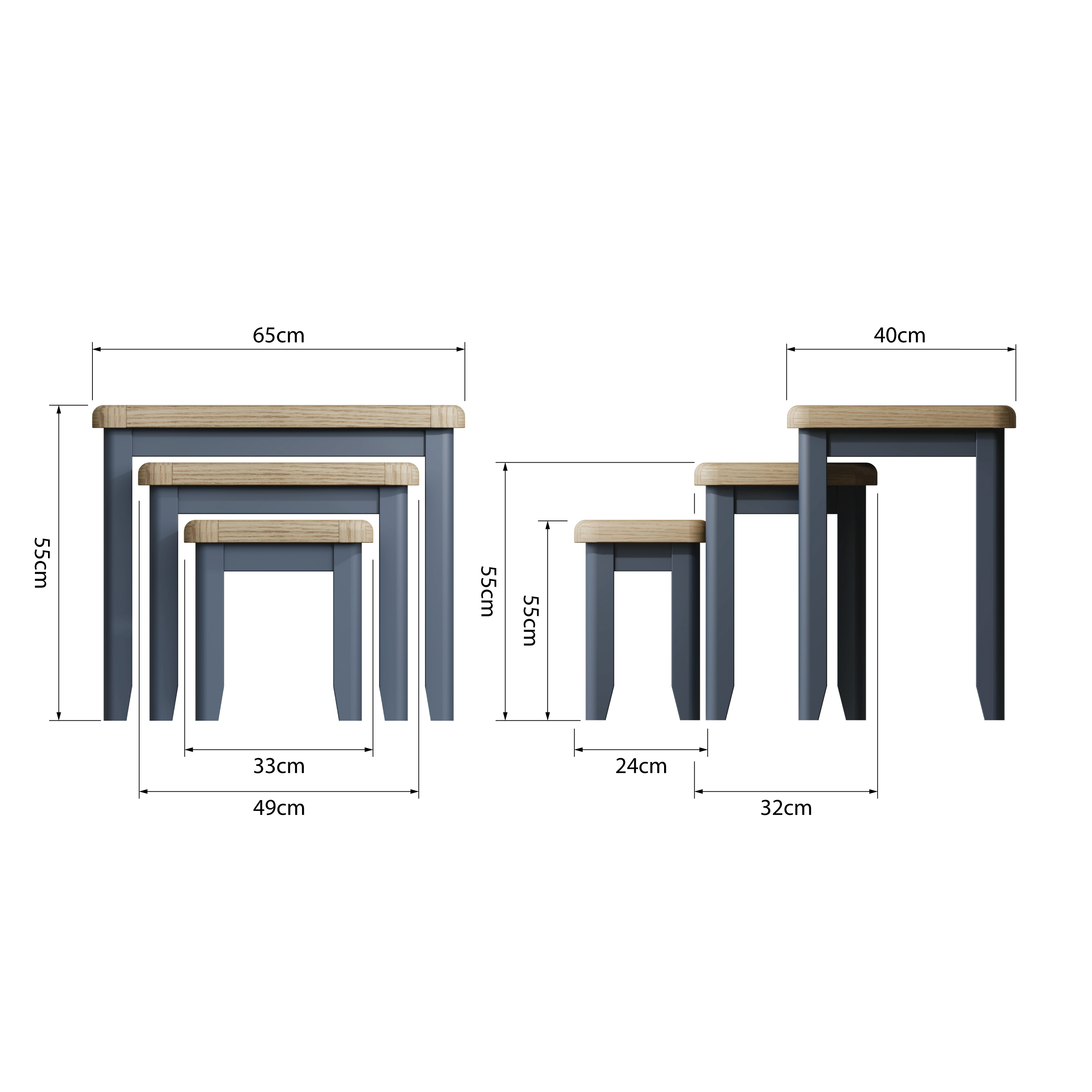 With a radiant blue painted finish and rounded corners, the HO Blue collection brings a sumptuous and elegant traditional style that is set to complement any interior. Impressive quality runs through every detail, from the rounded corners and tapered legs to the thick oak tops and solid proportions.