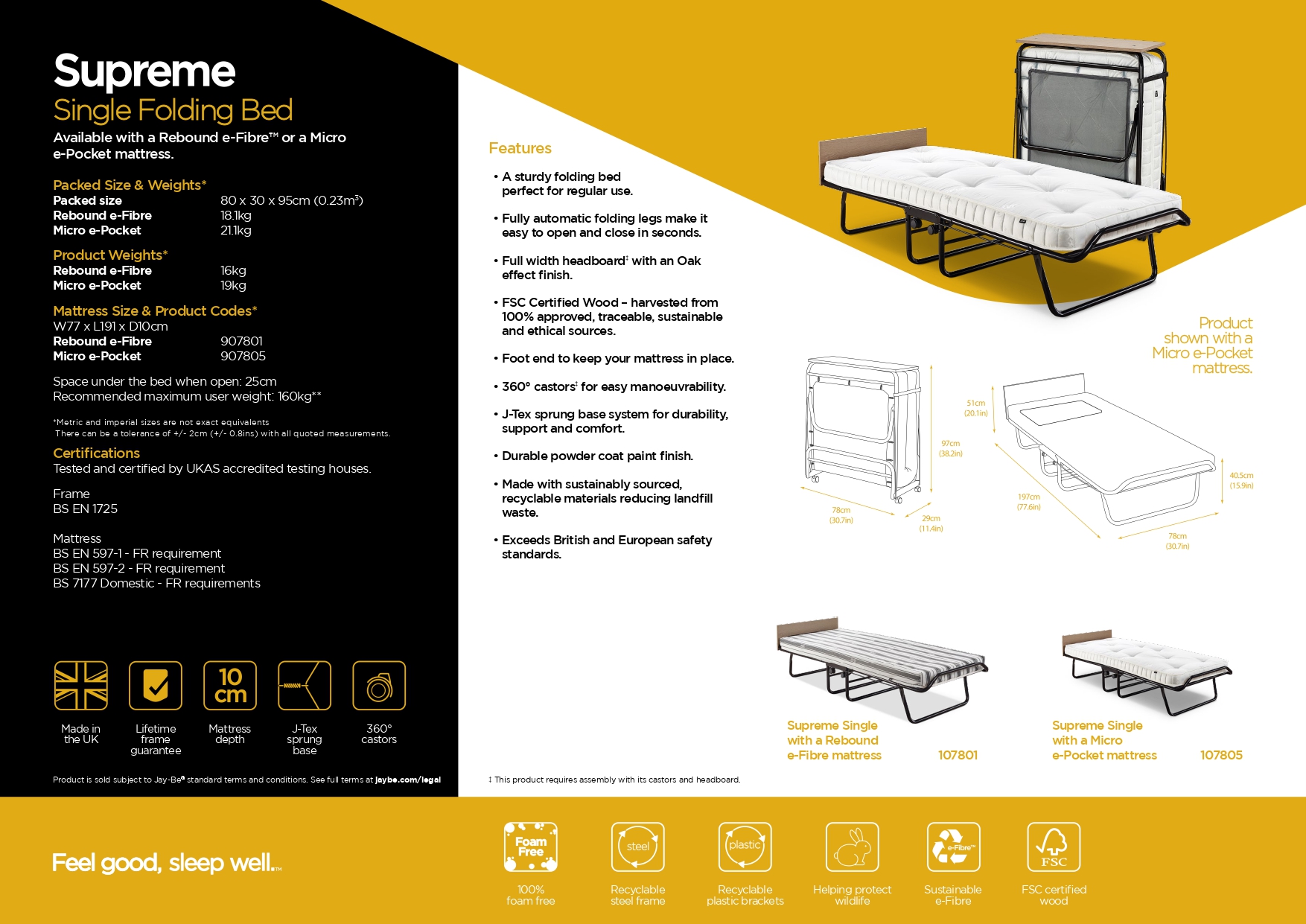 Supreme Folding Bed With Pocket Sprung Mattress Single