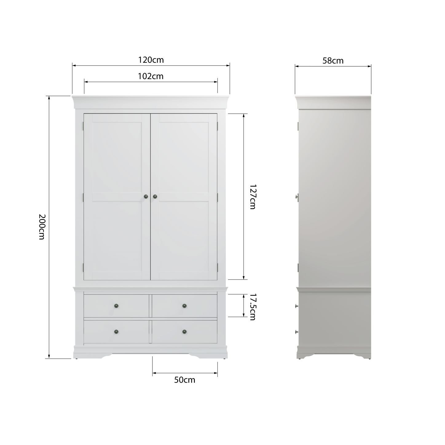Swinford White 2 Door 2 Drawer Wardrobe